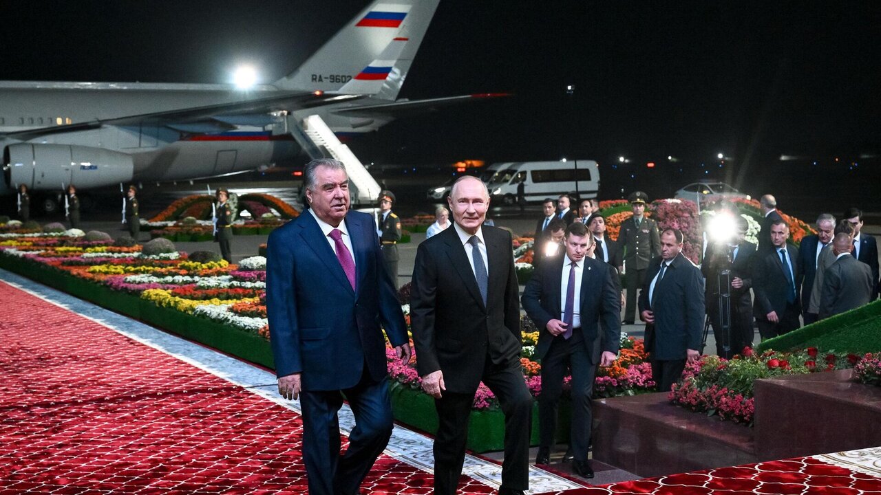 «ولادیمیر پوتین» رئیس جمهور روسیه هم اکنون برای سفری ۳ روزه وارد شهر دوشنبه پایتخت کشور تاجیکستان شد. منبع: اسپوتنیک