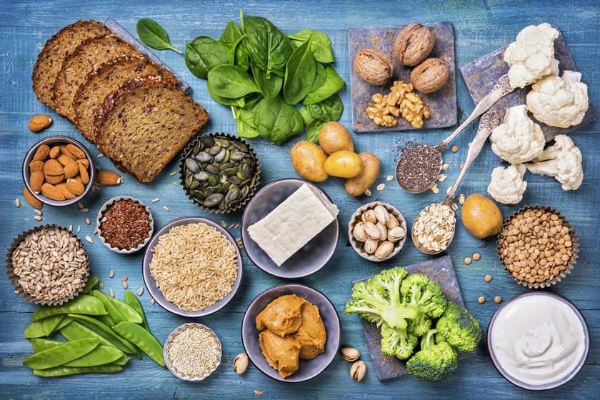 منابعی مانند عدس، نخود، لوبیا، سویا (توفو، تمپه)، مغزها و دانهها، و محصولات سویا غنی شده میتوانند منبع خوبی از پروتئین باشند. - کاهش مصرف غذاهای گیاهی بسیار فرآوریشده